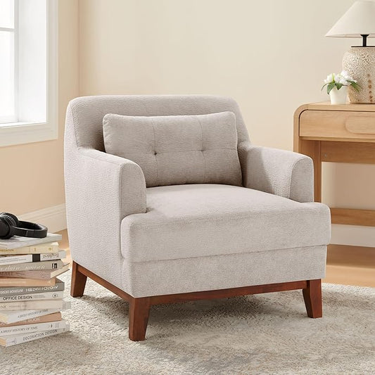 COLAMY Modern Accent Chair for Living Room, Upholstered Fabric Accent Armchair with Back, Soft Single Sofa Chair with Arms for Bedroom/Office/Reception Room, Oatmeal