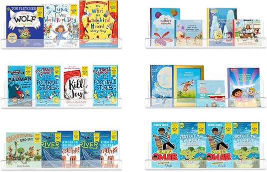 6 Pack Clear Acrylic Floating Shelves for Wall, 15'' Plastic Wall Mounted Display Shelf Kids Bookshelf and Spice Organizer for Bedroom, Living Room, Kitchen, Bathroom, Office