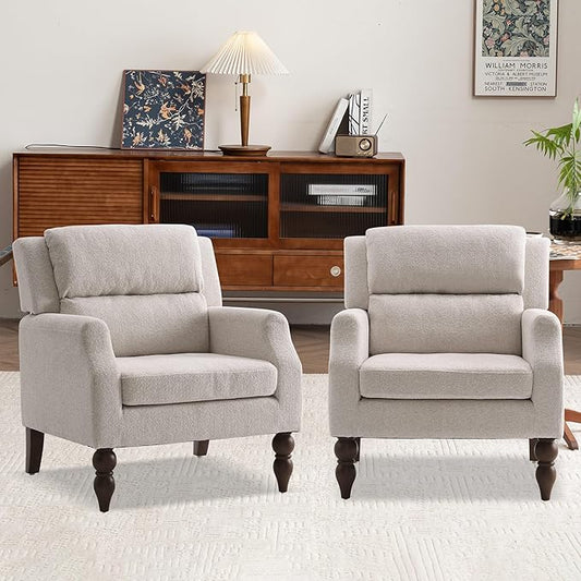 Kidol & Shellder Beige Oversized Accent Chair for Living Room Set of 2 Modern Reading Chair with Back Wide Upholstered Comfy Single Sofa Chair for Bedroom Lounge Side Corner Boucle Fabric Armchair