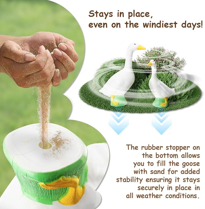 - Product Specifications – Exclusive Gaggleville plastic goose is 23 inches high; if enjoying outside, you may want to weigh it down with some sand or stones (not included)