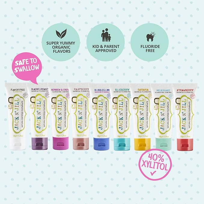 - FLUORIDE FREE - Made with organic fruit flavorings, natural ingredients, 40% Xylitol and free of fluoride, sugar, and artificial additives, it's a choice parents and kids can feel good about!