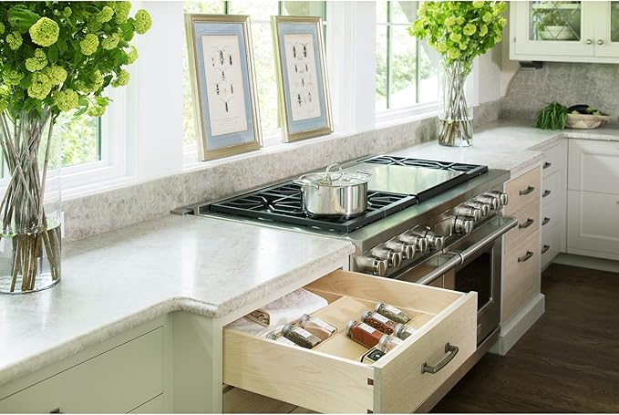 - Maximize space while efficiently storing and organizing spices with the 16-inch 3-tier drawer insert