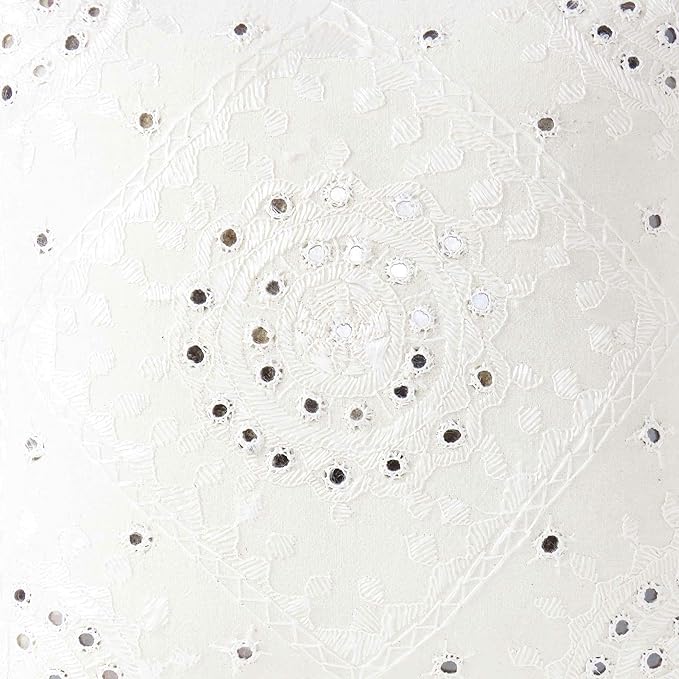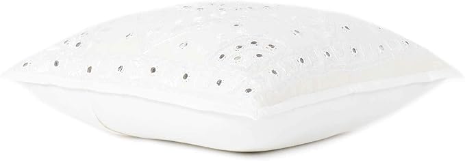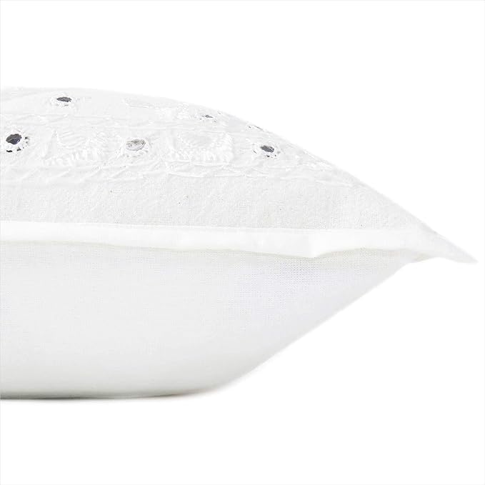 Eyes of India Embroidered Decorative Boho Throw Pillow Cover with Mirrors, Handmade Bohemian Accent Cushion Case for Sofa Couch Bedroom Living Room (White, 24" x 24")