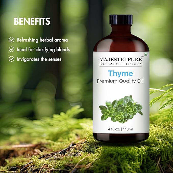 Majestic Pure Thyme Essential Oil with Glass Dropper - Huge 4 Fl Oz - 100% Pure and Natural Thyme Oil - Premium Grade Essential Oils for Diffuser, Aromatherapy, Soap and Candle Making