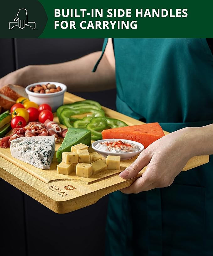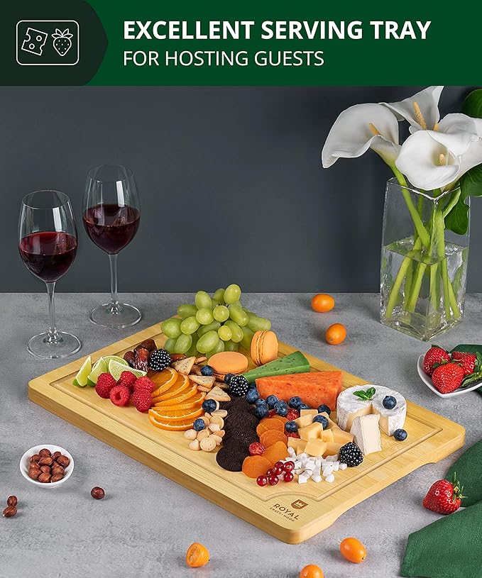 ROYAL CRAFT WOOD Extra Large Cutting Boards for Kitchen Meal Prep & Serving-Bamboo Wood Cutting Board with Deep Juice Groove - Charcuterie & Chopping Butcher Block for Meat - Gadgets Gift (XL 18x12")