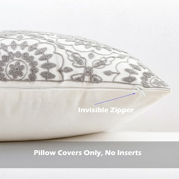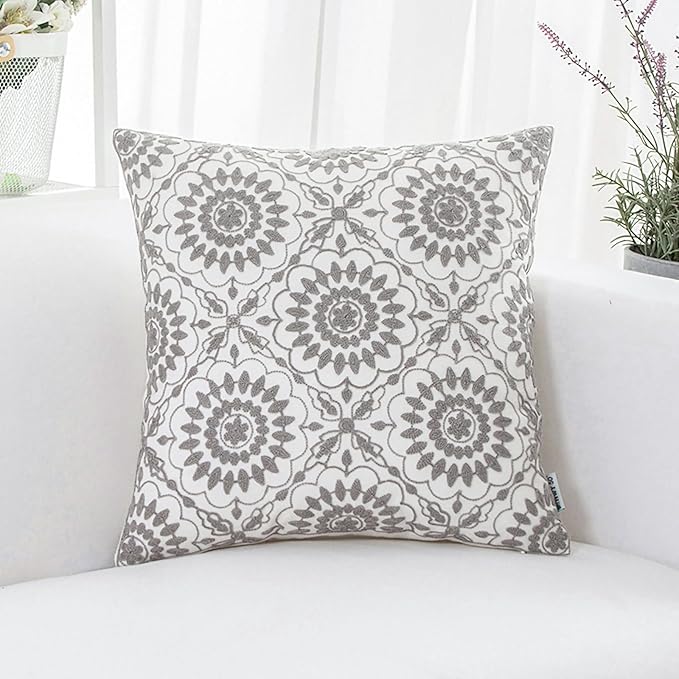 - Size & Material: This 18 x 18 inch (18 by 18) square throw pillow cover is made of 100% thick cotton canvas for durability. The crisp white fabric is soft yet sturdy, featuring beautiful single-sided embroidery for an elegant touch