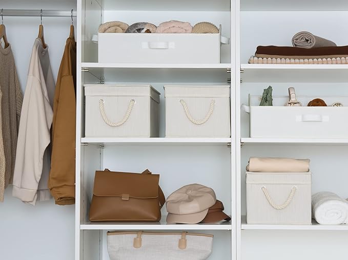 - Thick fabric storage boxes with lids reinforced with heavy-duty boards.