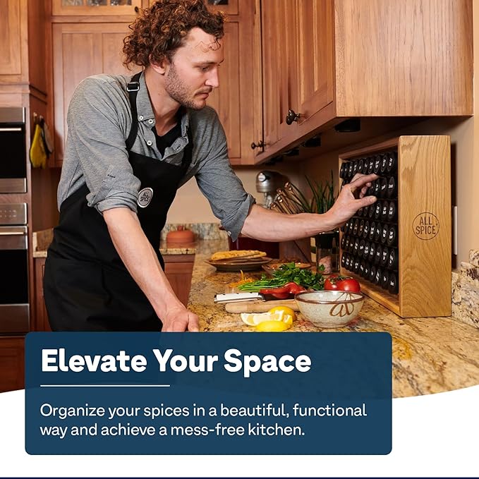 - Solid Bamboo Wood Design - Crafted with a strong, durable bamboo frame and a sleek, satin finish, the All Spice organizer infuses style into any kitchen or pantry décor while eliminating cluttered countertops, cabinets and seasoning containers