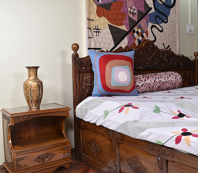 - 👍 MODERN THROW PILLOW COVER - HAND EMBROIDERED: These colorful decorative modern throw pillow covers are inspired by the art of Kandinsky and are hand embroidered in soft wool to perfection, stitch by stitch, by the finest artisans, creating an extraordinary all modern abstract pillow for your home decor. A close-up view of this all modern accent pillow cover allows you to see the amazing fine chain-stitch hand embroidery. A perfect modern sofa pillow for your contemporary couch.