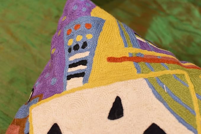 - 👍 MODERN THROW PILLOW COVER - HAND EMBROIDERED: These colorful decorative modern throw pillow covers are inspired by the art of Kandinsky and are hand embroidered in soft wool to perfection, stitch by stitch, by the finest artisans, creating an extraordinary all modern abstract pillow for your home decor. A close-up view of this all modern accent pillow cover allows you to see the amazing fine chain-stitch hand embroidery. A perfect modern sofa pillow for your contemporary couch.