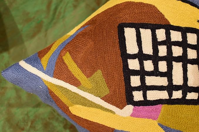 Kandinsky Modern Pillow Cover Frame Gray Abstract Pillowcase Grey Modern Chair Cushion Contemporary Outdoor Pillows Kids Room Handembroidered Wool Size 18x18