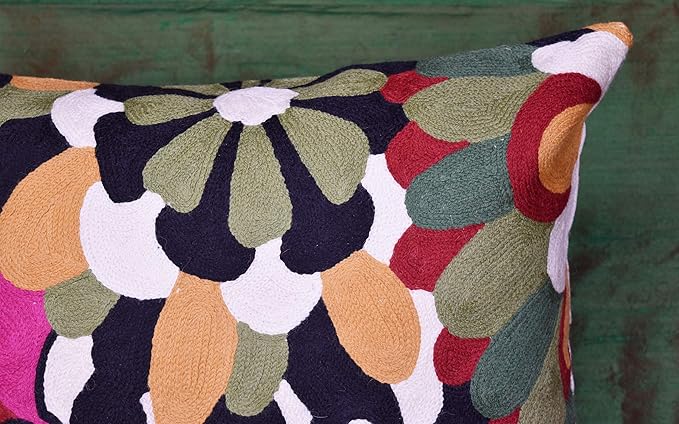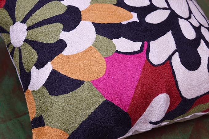 - 👍 FLORAL THROW PILLOW COVER - HAND EMBROIDERED: These colorful flower pillows are inspired from contemporary modern floral art designs and are hand embroidered in soft wool to perfection, stitch by stitch, by the finest artisans, creating an extraordinary all modern floral design pillow for your home decor. A close-up view of this all modern flower cushions allows you to see the amazing fine chain-stitch hand embroidery that covers the whole front side of this floral pillowcase.