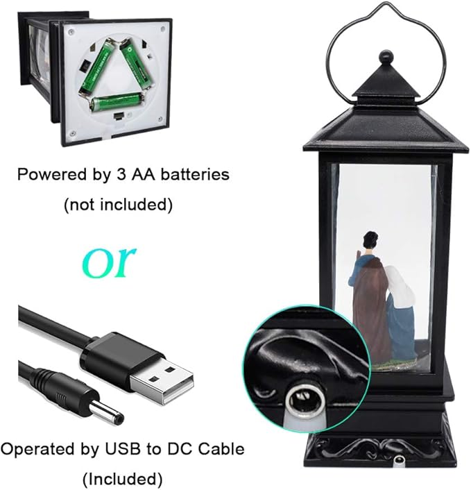 - ♥PLUG-IN POWER: This snow globe lantern can operated without batteries, with the included USB to DC cable, you can use it without batteries, which can save a lot of money and last for several seasons. For convenient placement, you can also use 3 AA batteries(not included) to operate it.