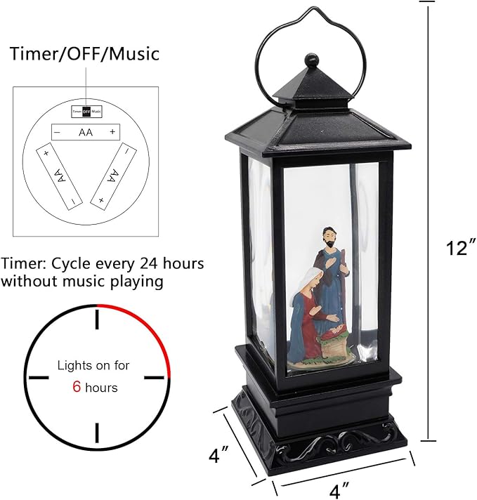 - ♥MUSIC FEATURE: Cycle play Christmas themed music "Silent Night", imagine that you and your families sitting around the fireplace catch up at warm night, enjoy the happy time with Christmas decorative lighted musical snow globe lantern.