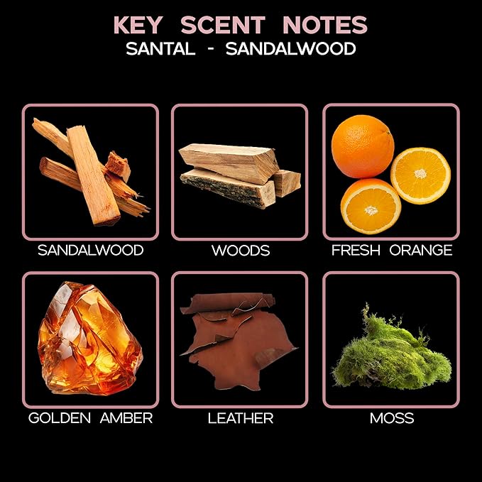 - Scent : Aromatherapy, Santal (Sandalwood), Scented, Warm, Woodsy