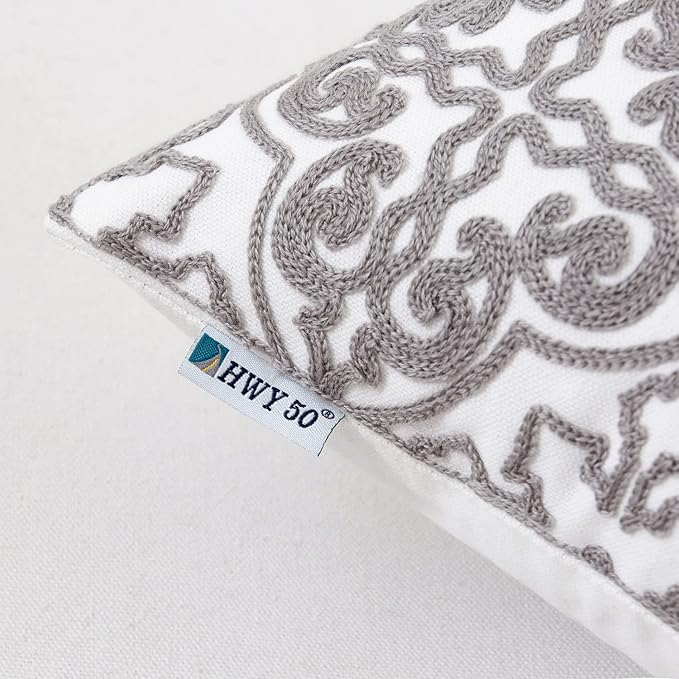 HWY 50 Grey Gray Decorative Throw Pillow Covers 18x18 Inch, Pack of 2 Embroidered Cotton Farmhouse Cushion Cover Pillow Case for Sofa Couch Living Room Bed Bedroon, Modern Pattern