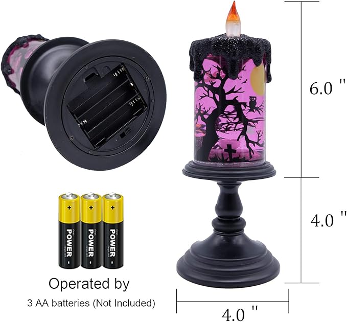 - CREATIVE DESIGN: Unlike traditional flameless candles, this lighted snow globe candle powered by 3 AA batteries and built-in motor swirl the water like the GHOST spinning around the candle. A great addition to your indoor Halloween decoration