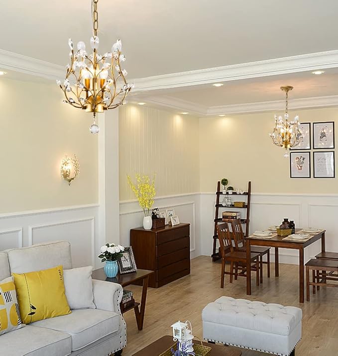 - ARTIST DESIGN: Gold crystal chandelier use 5 branches with crystals design to increase the line sense of fixture, beautiful shape and strong artistic design give you a unique choice, use transparent glass crystals to capture and reflect the light of the bulb. Black, Gold two colors for optional, sparking and stunning crystal to created a warm and soft atmosphere.