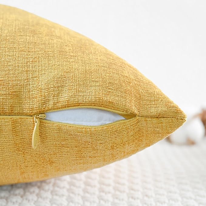 CaliTime Throw Pillow Covers Decorative 16 X 16 Inches Pack of 2 Cozy Soft Chenille Cushion Cases for Couch Sofa Bed Living Room Home Gold
