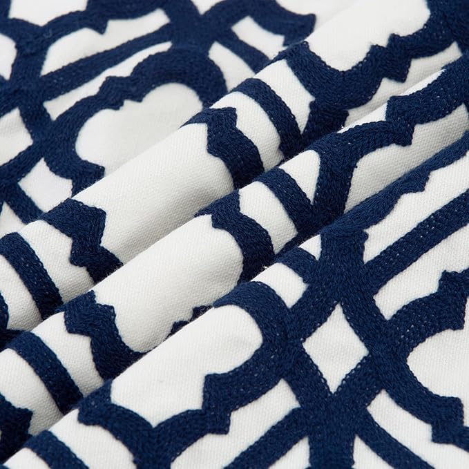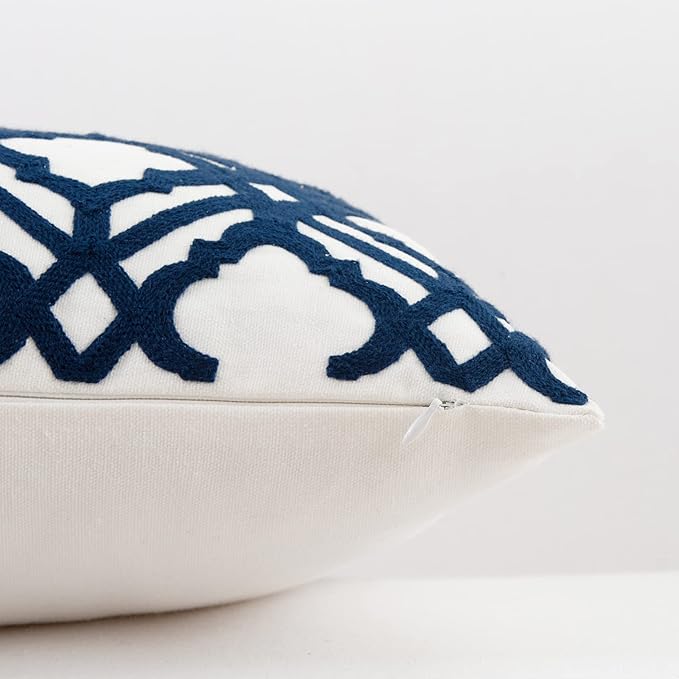 HWY 50 Dark Blue Decorative Throw Pillow Covers 18x18 Inch, Pack of 2 Embroidered Cotton Farmhouse Cushion Cover Pillow Case for Sofa Couch Living Room Bed Bedroon, Trellis