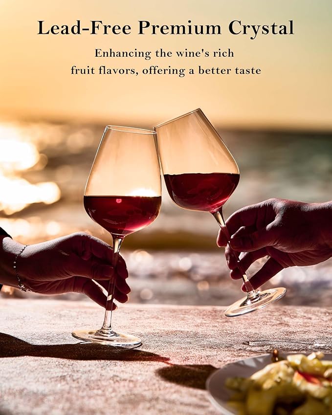 - Classic Bordeaux Wine Glass Design Makes Your Wine Taste Better: The Golden Ratio Design allows you effortlessly swirl your wine and let it breathe and release its delicate aromas, while also elegantly guiding the wine into your mouth. The unique shape of the glass helps to balance the tannins in red wine, reducing bitterness and enhancing the wine's rich fruit flavors