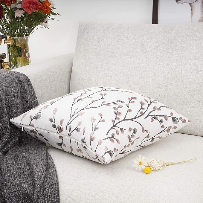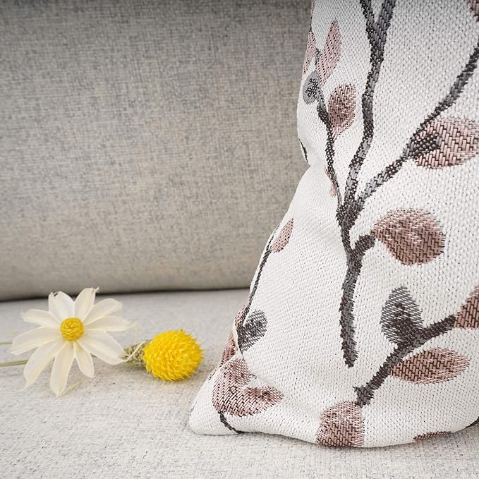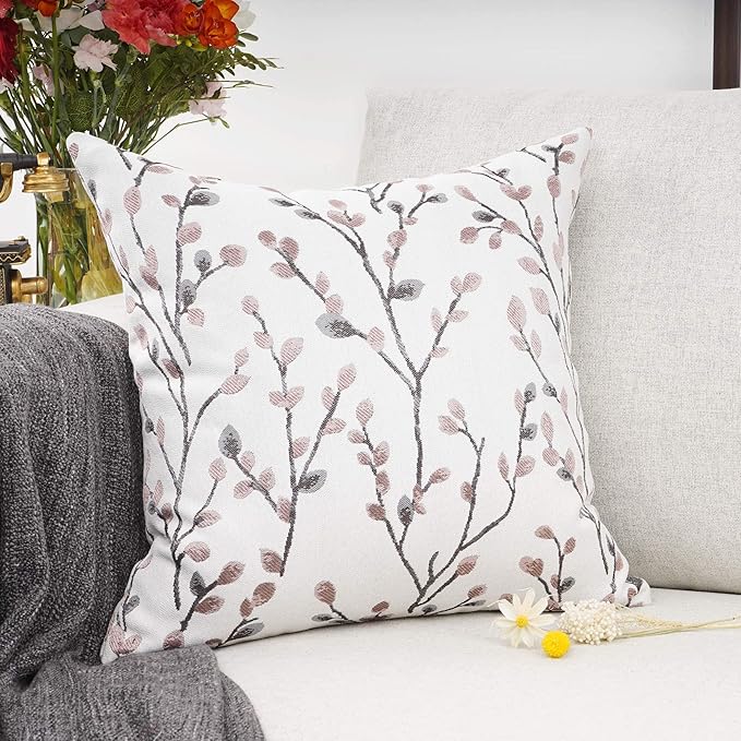 YOUR SMILE Classical Embroidery Jacquard Pink Leaf Pattern Square Decorative Throw Pillow Case Cushion Cover 18x18 inch