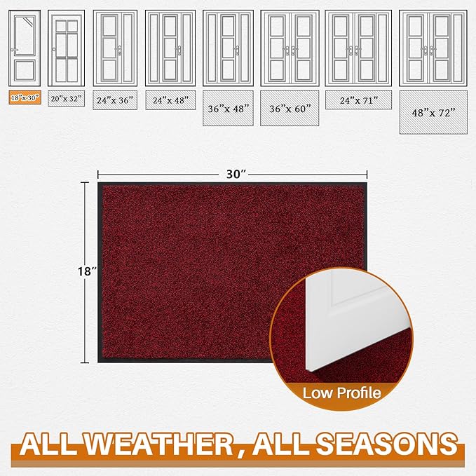 Mibao Front Door Mat, Dirt Trapper Welcome Mat for Outdoor Indoor, Non-Slip Waterproof Doormat, Durable Machine Washable Low Profile Entry Rug for Back Door Outside Patio Porch, 32" x 20", Red