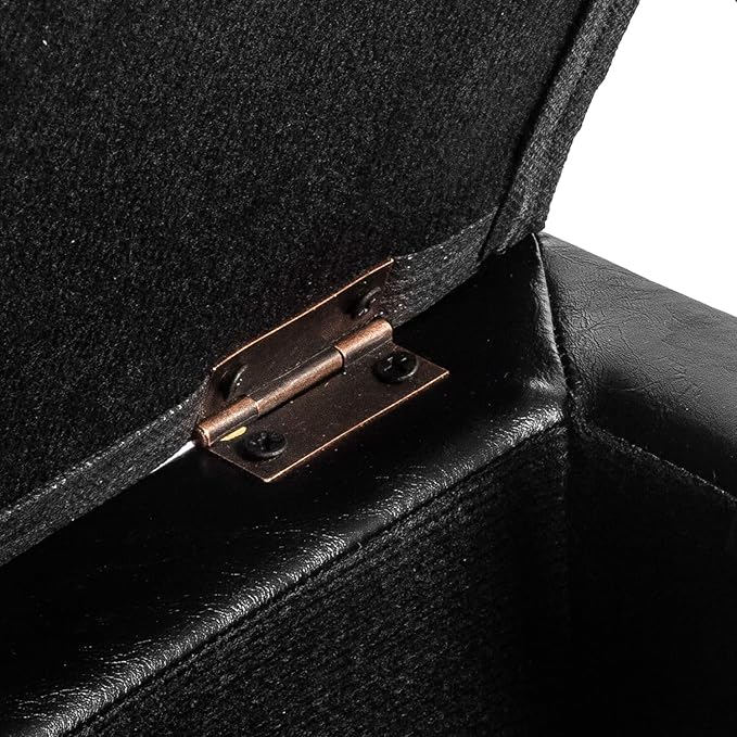 - UNIQUE DESIGN: Special hand strap design makes opening the ottoman easier. Just pull up the strap and the lid can be opened easily and the metal crank arm prevents the falling top hit your fingers.