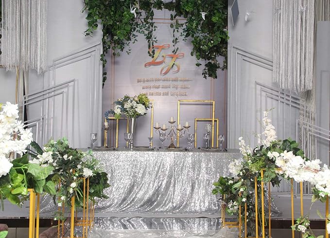 SquarePie Sequin Tablecloth 60 x 102 Inch Silver Bling Sparkly Table Cloth for Wedding Party
