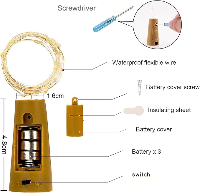 - Easy to Use and Install: Each cork with a ON/OFF switch. Easy to turn on and off switch (turn it off when you don’t need them)