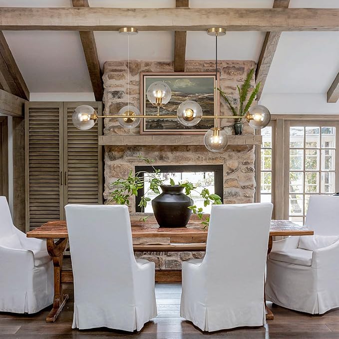- 【Adjustable Chandelier & Work on Sloped Ceilings】The globe hanging ceiling light has 47.2" hanging cord, you can adjust the hanging height to reach your needs, perfectly suit low ceilings and high ceilings. It also compatible with sloped ceilings or parallel ceilings. Perfect to hang it over kitchen island or dining table. The dining lights ceiling hanging is assembly required and easy to install, with all mounting hardware and a detailed mounting instruction included.