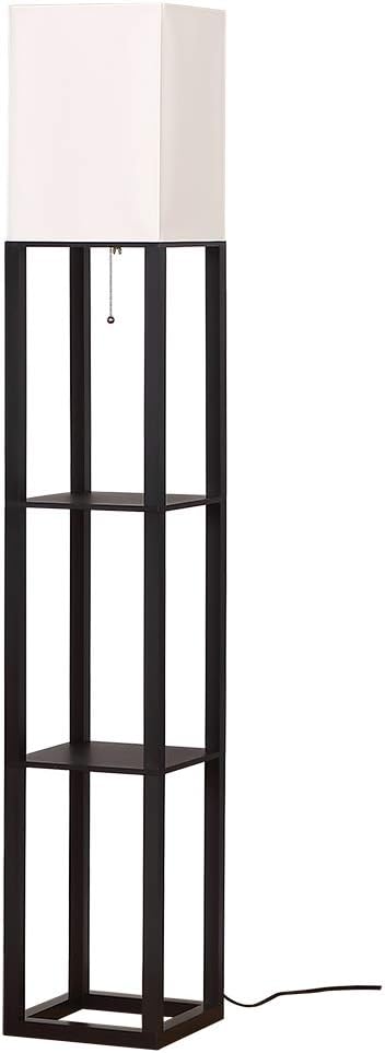 HomeFocus - Floor Lamp with Shelves,Shelf Floor Lamp with LED Bulb,Bookshelf Corner Display Lamp for Living Room,Bedroom and Office,White Linen Shade,Rustic Wood,Black
