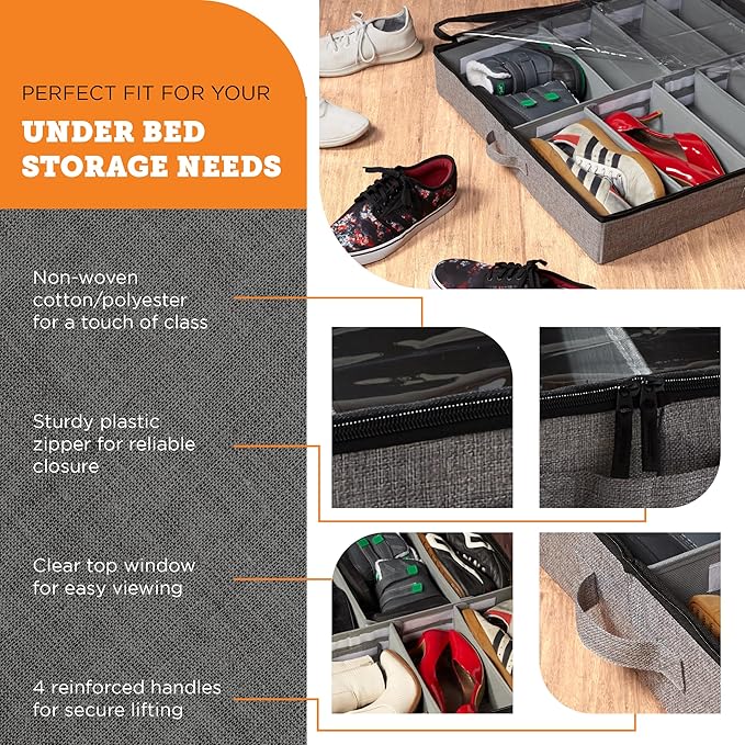 - LOW PROFILE: Measures 30'' long, 24.5” wide, and 4.3'' tall so it fits beds 5'' off the floor and higher. Holds up to 12 pairs of shoes each with a total of 24 pairs of shoes. Fits neatly under the bed or closet.
