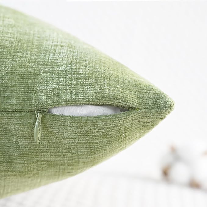 CaliTime Throw Pillow Covers Decorative 22 X 22 Inches Pack of 2 Cozy Chenille Cushion Cases for Couch Sofa Bed Living Room Home Sage Green