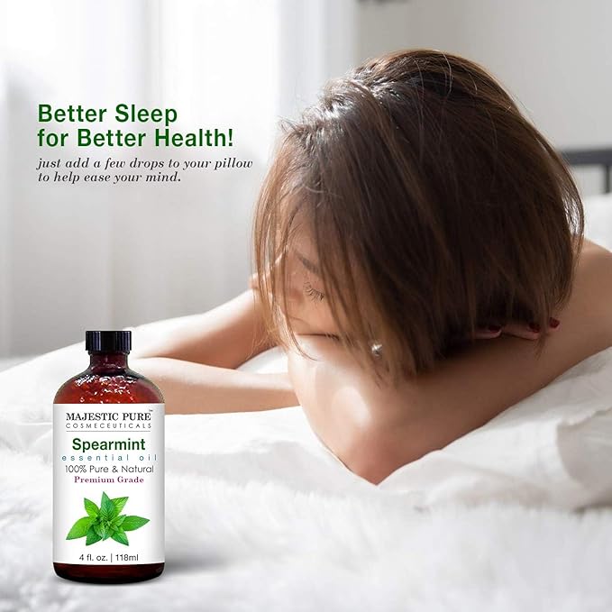Majestic Pure Spearmint Essential Oil with Glass Dropper - Huge 4 Fl Oz - 100% Pure and Natural Spearmint Oil - Premium Grade Essential Oils for Diffuser, Aromatherapy, Soap and Candle Making