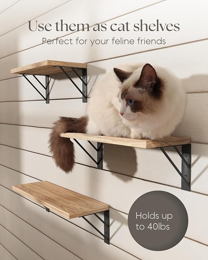 - 【Extra Uses】 BAYKA floating shelves can be used as cat shelves to "play" with your cat, giving cute cats extra space to move and rest without taking up floor space, which makes them more active. Every shelf can hold 40 pounds, and the sturdy structure allows the cat to jump on or off easily and safely.