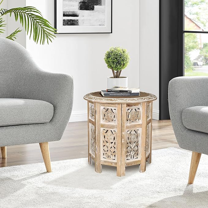 - Premium Solid Mango Wood Craftsmanship - Each accent table is hand-carved from durable mango wood, offering natural strength and long-lasting beauty in farmhouse, rustic, or boho-style homes.