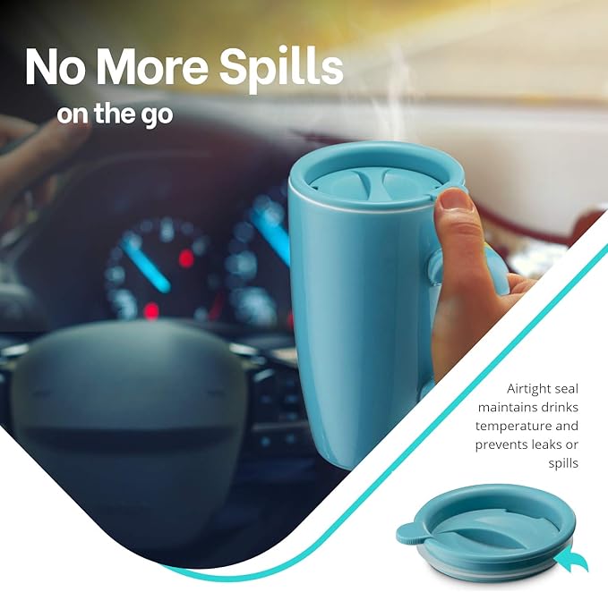 MITBAK 6-Pack Ceramic Coffee Mug Set with Lids (16-Ounce) | Large Colored Insulated Tumbler Mugs Set Great for Taking Your Coffee & Tea To-Go | Excellent Choice for Camping, Travel & Office