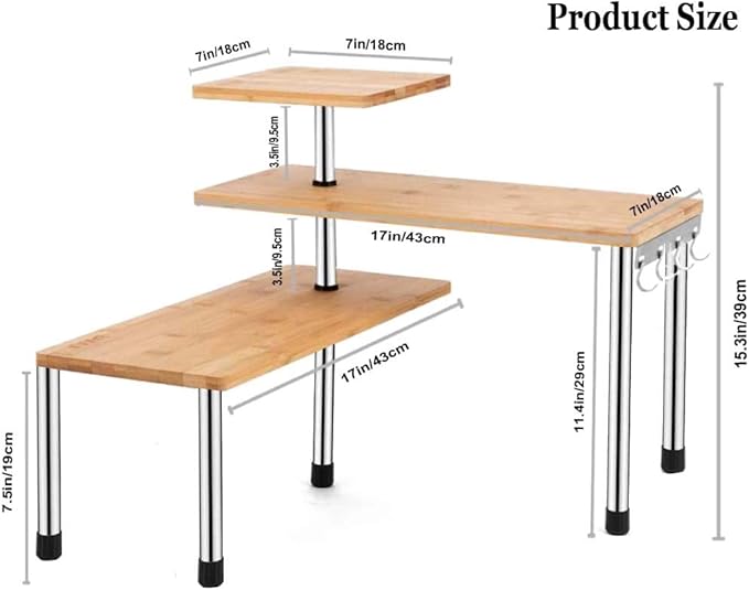 - Bamboo & Stainless Steel Construction: Crafted from high-quality bamboo with sturdy stainless steel legs, this shelf is built to last
