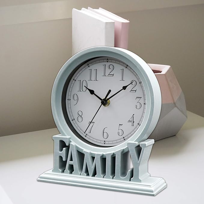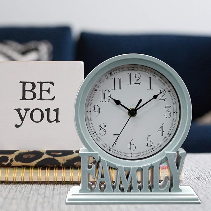 Clumsypets 6.5 Inches Table Clock, Vintage Non-Ticking Family Mantel Desk Clock Battery Operated with Quartz Movement HD Glass for Kids Bedroom Living Room Office (Cottage Blue)