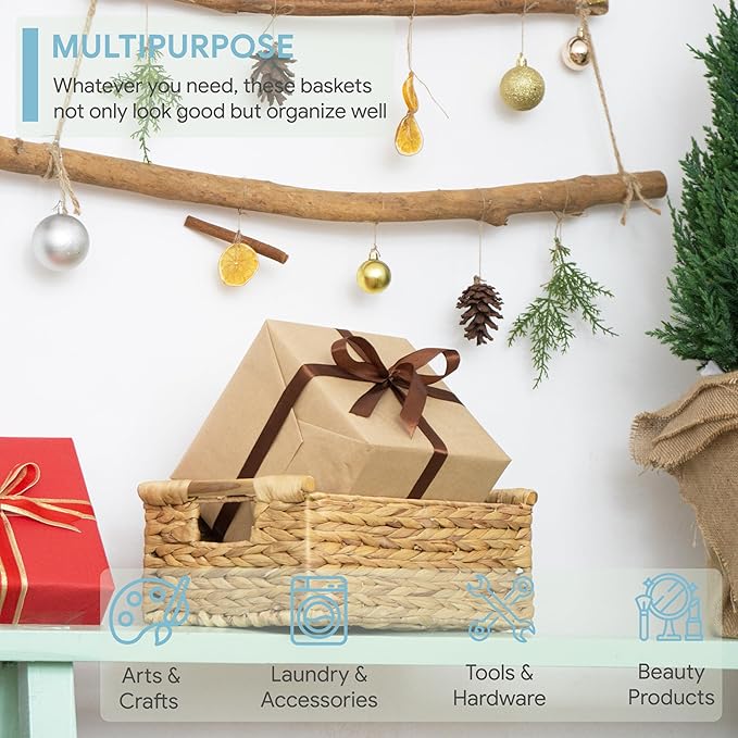 - ✅ Convenient and Attractive - Whether it be by way of pure decor, storage, or organization for kitchen, pantry, or bathroom. This natural baskets with handles suit your home in every way. The rectangular baskets wicker is great for magazines, games, pet toys, media, household items.