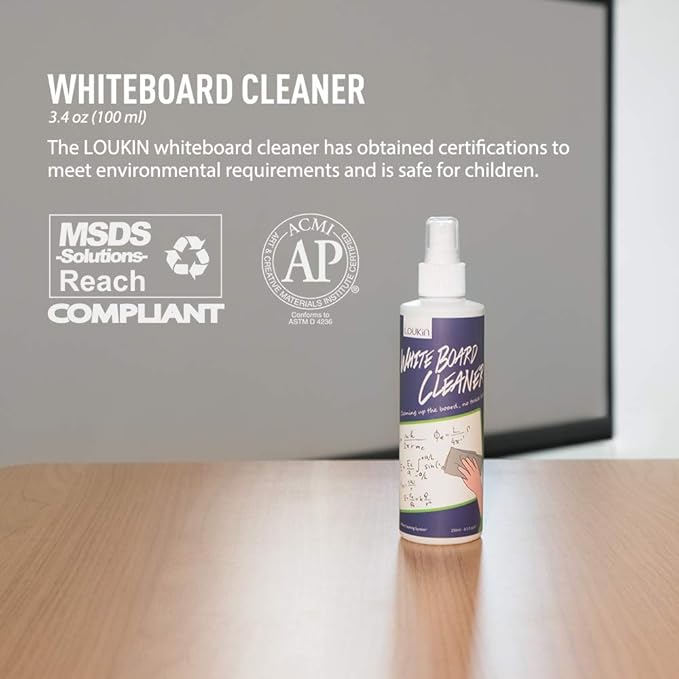 - CONTAINS: 1 x marker holder (8.4 x 3.5 x 2.7 in) ; 1 x shag eraser; 2 x dry erase markers with En713 certification; 1 x 3.4 fl oz cleaner with AP certification; 6 x strong magnet; 2 x long-lasting adhesive.