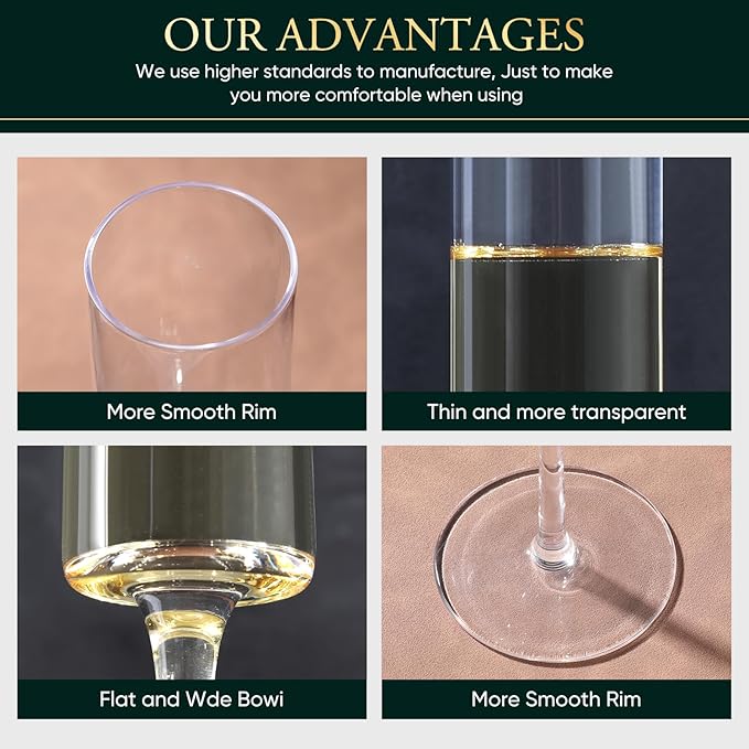 - Unique Drinking Experience: Out crystal wine champagne glasses are made to enjoy your favorite prosecco, champagne, sparkling wine,Martini , or cava. We relentlessly strive for high-quality wine glass production and service to win your 100% satisfaction.