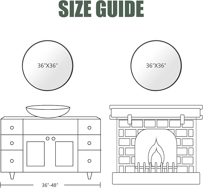- Modern Brushed Frame Design: 36-inch black circle mirror is crafted of an aluminum alloy metal sleek frame, making it ideal for bathroom mirror, entrance mirror, vanity mirror, living room mirror