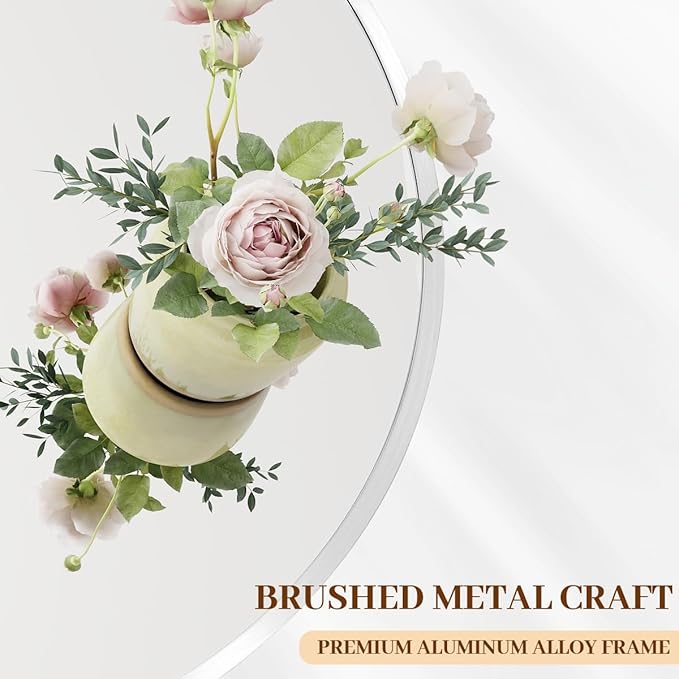 - Modern Brushed Frame Design: 30-inch white circle mirror is crafted of an aluminum alloy metal sleek frame which doubles as a protective bumper, making it ideal for high-traffic areas as bathroom mirror, entrance mirror, vanity mirror, living room mirror