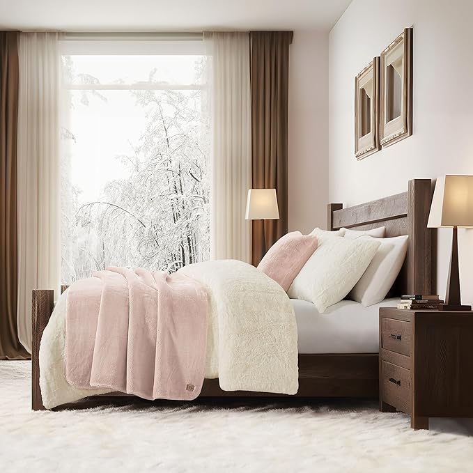 UGG Whitecap Plush Throw Blanket Fleece Lightweight Soft Throw for Couch or Bed Luxury Home Decor for Living Room Washable Hypoallergenic Blankets for Dorm Decor, 50-inch x 70-inch, Light Pink Quartz