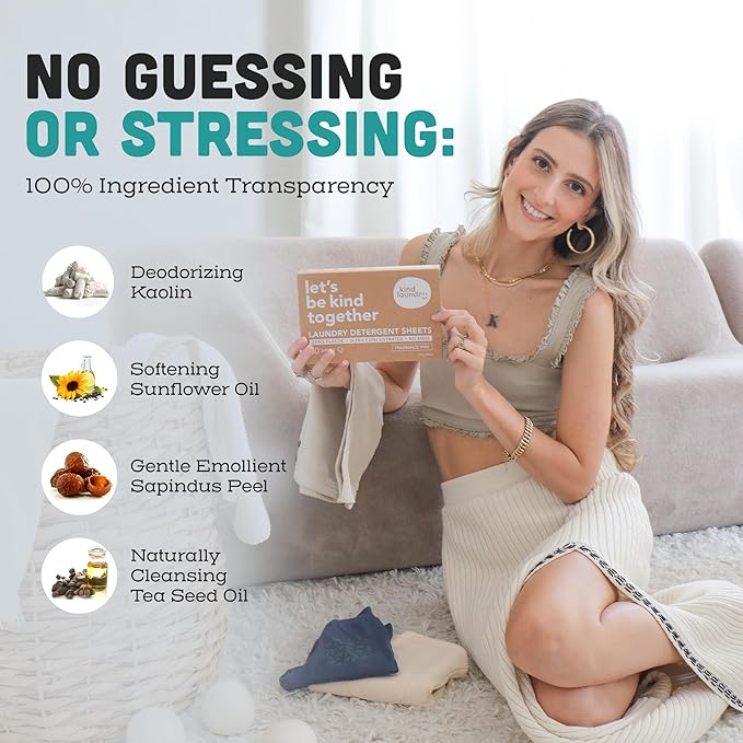 - Provides Strong Cleaning Power - Tackle tough stains with Kind Laundry’s ultra-concentrated laundry detergent sheets! Our laundry sheet is made with a proprietary formula of tea seed oil and powerful plant-based surfactants–no unnecessary fillers and harmful chemicals included.