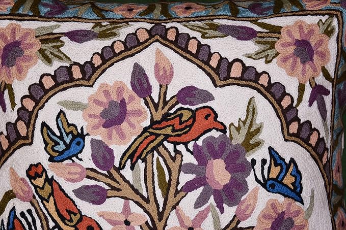 Tree of Life Pillow Cover Lavender Floral Pillowcase Botanical Flower Pillows Plants Farmhouse Traditional Chair Cushions Needlepoint Hand Embroidered Wool Size - 18x18