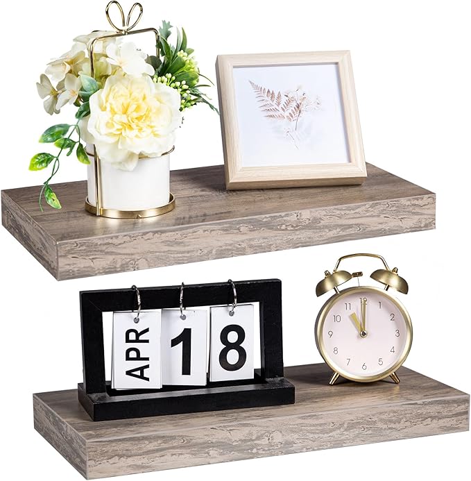 - Exquisite Wall Surface Decoration: Two classic and elegant greige wooden shelves can be placed on each wall surface of all household rooms. This floating shelf for room wall is not only for its decoration effect, but also for this wall shelves high practicality. It is an ideal place to display your beloved photos, trophies and other delicate ecorations