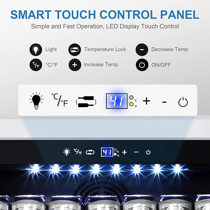 - 【Digital Display& Adjustable Shelf】Large display and white Led light to let you monitor the temperature and interior condition even in the dark. The beverage fridge’s shelf is removable so you can change the rows to accommodate different sizes of beverage